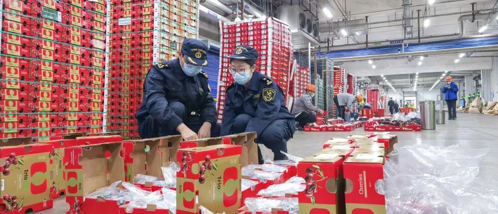 12月6日,南沙海關(guān)關(guān)員對進口車厘子進行監(jiān)管。新華社發(fā)