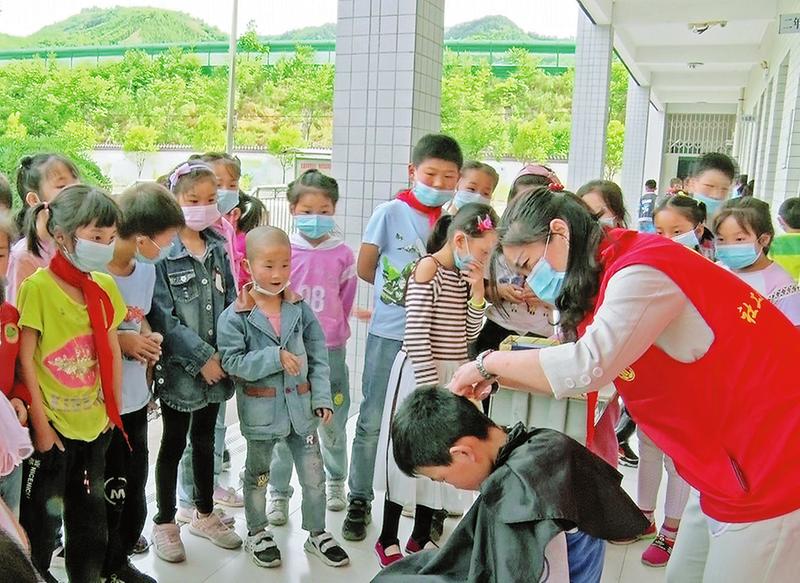 5月27日,市民政局、市慈善協(xié)會(huì)等5家單位組織職工在夜村鎮(zhèn)甘河小學(xué)舉行慶“六一”關(guān)愛兒童活動(dòng),向?qū)W生送去書包、乒乓球拍和籃球等價(jià)值4000多元的學(xué)習(xí)、體育用品,并為部分學(xué)生義務(wù)理發(fā)。(記者 王孝竹攝)