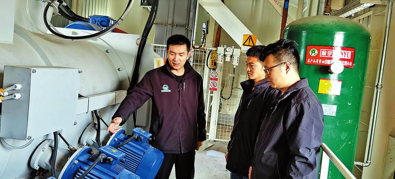 蘧小虎(左一)在企業(yè)指導(dǎo)生產(chǎn)