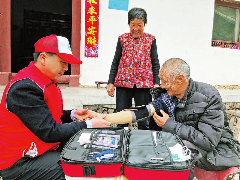 “血壓還是有點(diǎn)高,降壓藥要按時(shí)吃,平時(shí)注意休息,吃飯要少鹽低油,其他都好著,您放心吧!”4月15日,在山陽縣高壩店鎮(zhèn)魚塘村,村醫(yī)孫立軍在對村民陳天喜進(jìn)行隨診服務(wù)時(shí),為其認(rèn)真測量血壓后,細(xì)心叮囑他如何用藥和注意事項(xiàng)。