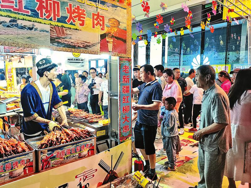 6月12日,市區(qū)一商場(chǎng)舉辦美食節(jié)活動(dòng),吸引了眾多商販參與,一些市民前往享用特色美食。夜間經(jīng)濟(jì)是現(xiàn)代城市業(yè)態(tài)之一,指從當(dāng)日下午6點(diǎn)到次日早上6點(diǎn)所包含的經(jīng)濟(jì)文化活動(dòng),其業(yè)態(tài)囊括晚間購(gòu)物、餐飲、旅游、娛樂(lè)、學(xué)習(xí)、影視、休閑等,已被廣大市民認(rèn)可和接納。