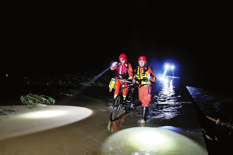 7月23日20時(shí)27分,洛南消防救援部門在交通、通信中斷的石坡鎮(zhèn),騎車、徒步通過周灣村,與受災(zāi)村取得聯(lián)系,為救援提供重要信息。