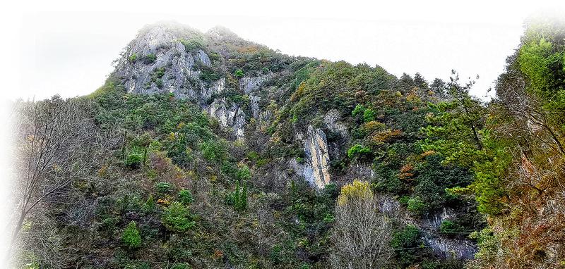 從天橋社區(qū)(原天橋鎮(zhèn)政府所在地)明朝“天橋”遺址處下行,兩山對(duì)峙,如巨型石門扼控天橋河。進(jìn)入這道“石門”,但見兩側(cè)山環(huán)水繞,林木蔥郁,山花點(diǎn)綴,群群喜鵲與不知名的小鳥穿林過溪,讓人恍如來到世外桃源。