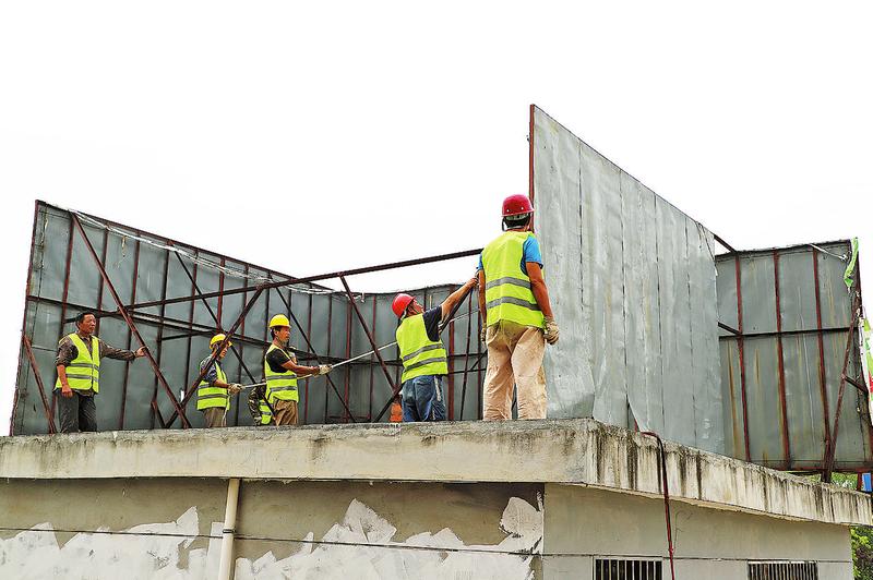 拆除龍泉小區(qū)樓頂廣告牌