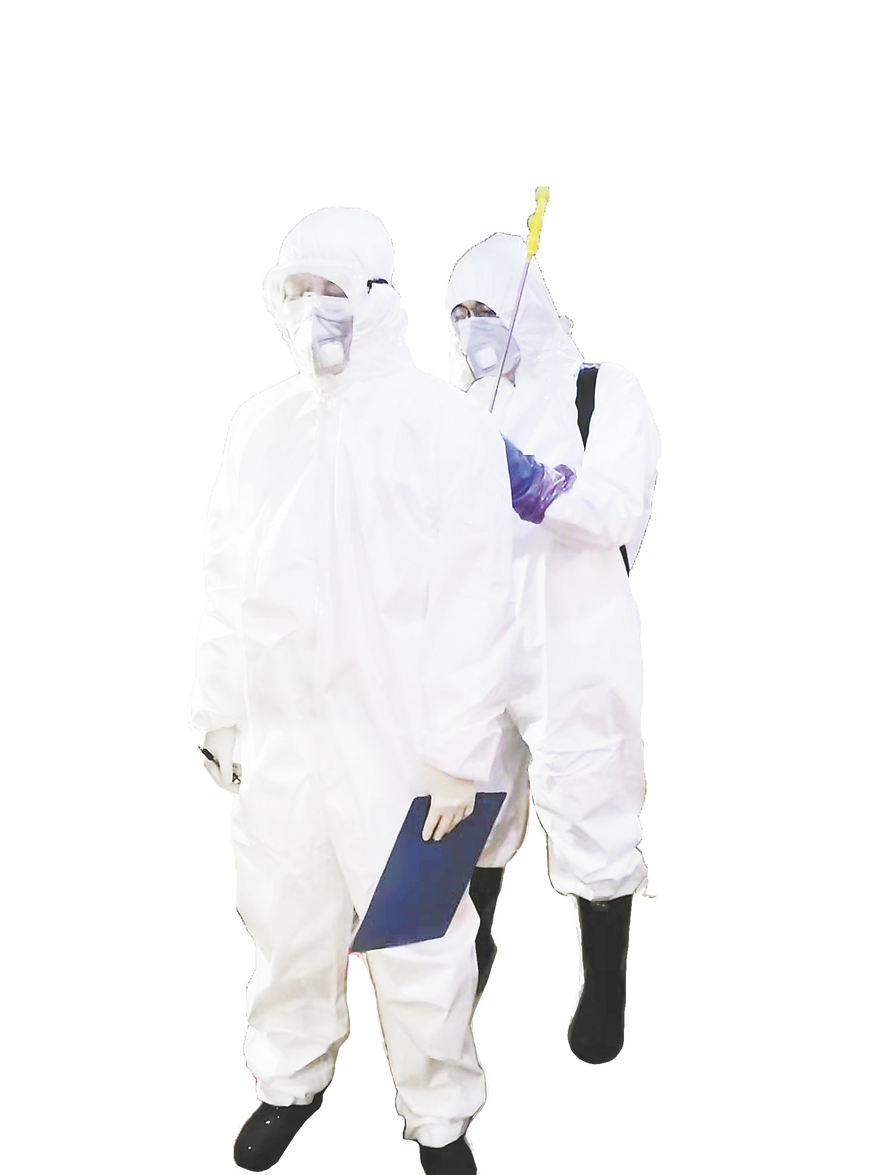 陳博和王飛配合做好個人防護