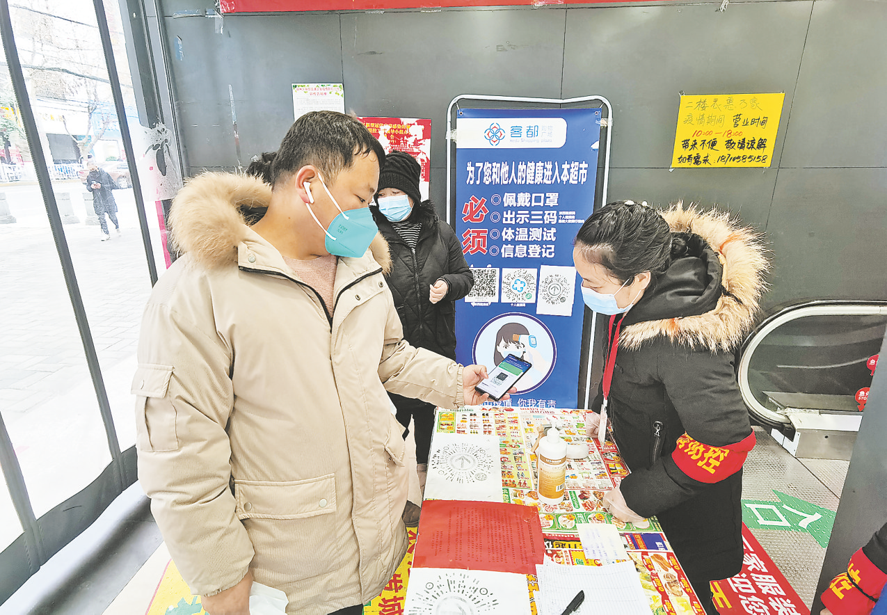 連日來,在位于通江東路的家都購物廣場門口LED顯示屏上反復(fù)播放著“戴口罩 不扎堆 勤洗手 常消殺 萬眾一心 共同抗疫”的宣傳標(biāo)語,十分醒目。進(jìn)入店內(nèi),購物車及購物筐區(qū)域旁分別設(shè)置消毒區(qū),工作臺上放置了員工登記表、西安等重點(diǎn)地區(qū)來商返商人員排查個(gè)案表、疫情消毒記錄表和每日疫情風(fēng)險(xiǎn)地區(qū)調(diào)整及管控措施對照表。“為方便管理,我們?nèi)?2名員工建立微信工作群,在群里開展例會,明確當(dāng)天消毒工作,每天發(fā)布更新疫情風(fēng)險(xiǎn)地區(qū)調(diào)整及管控措施對照表,職工還可以通過群反映疫情防控工作中遇到的特殊情況,以便快速處理。”當(dāng)班主管姚艷麗說,他們還開展了線上防疫工作培訓(xùn)和應(yīng)急預(yù)案培訓(xùn),在店里設(shè)置一間隔離室,如遇異常健康碼,第一時(shí)間聯(lián)系防疫部門,閉店消殺,將密接員工帶入隔離室隔離,等待核酸檢測。