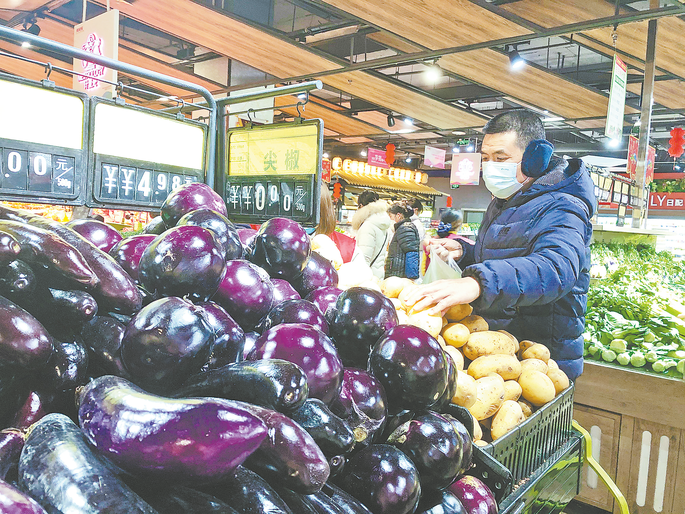 在市區(qū)天天樂超市入口處,指示牌上的“今日已消毒,請佩戴口罩”字樣格外醒目。經(jīng)過查驗行程碼、健康碼和檢測體溫后,記者在超市里看到,蔬菜區(qū)貨架上的白蘿卜、大白菜、洋蔥等越冬菜菜量充足,西紅柿、黃瓜、茄子等反季菜應(yīng)有盡有。西藍花、尖椒、豆王等價格稍高的菜也放滿貨架,前一向因價格走高而備受熱議的