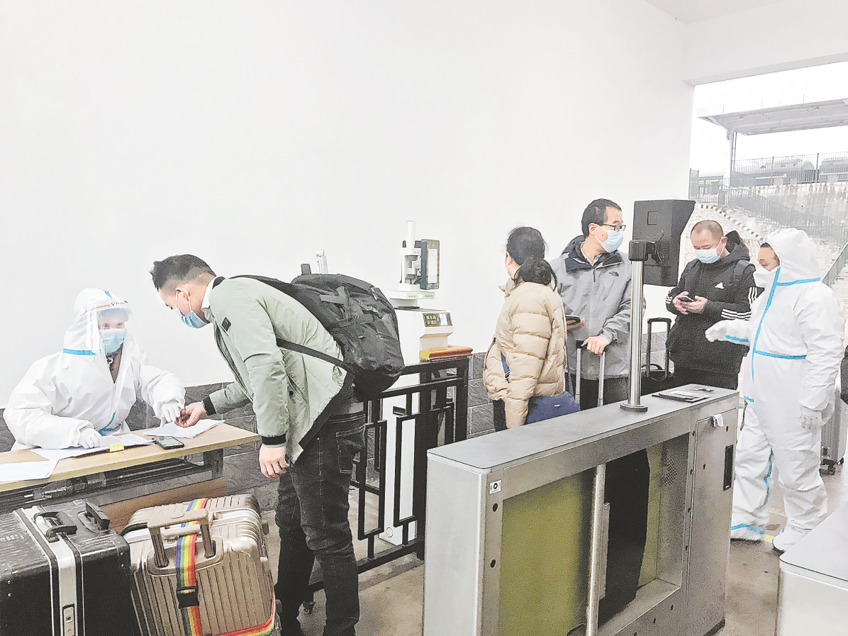 據(jù)商州區(qū)沙河子鎮(zhèn)鎮(zhèn)長(zhǎng)楊利國介紹,商洛站現(xiàn)在每天大約有11趟列車經(jīng)過,出站旅客多則400多人,少則200多人。春運(yùn)期間,返鄉(xiāng)人員還會(huì)增加,經(jīng)過商洛站的火車車次也會(huì)根據(jù)實(shí)際情況適量增加。他們會(huì)對(duì)于低風(fēng)險(xiǎn)地區(qū)歸來的旅客,進(jìn)行查驗(yàn)健康碼、行程碼以及48小時(shí)核酸陰性證明。對(duì)國內(nèi)中、高風(fēng)險(xiǎn)地區(qū)來商返商人員,原則上一律勸返,但也會(huì)根據(jù)實(shí)際對(duì)部分人員轉(zhuǎn)運(yùn)至集中隔離點(diǎn),落實(shí)14天集中隔離和7天健康監(jiān)測(cè)。
