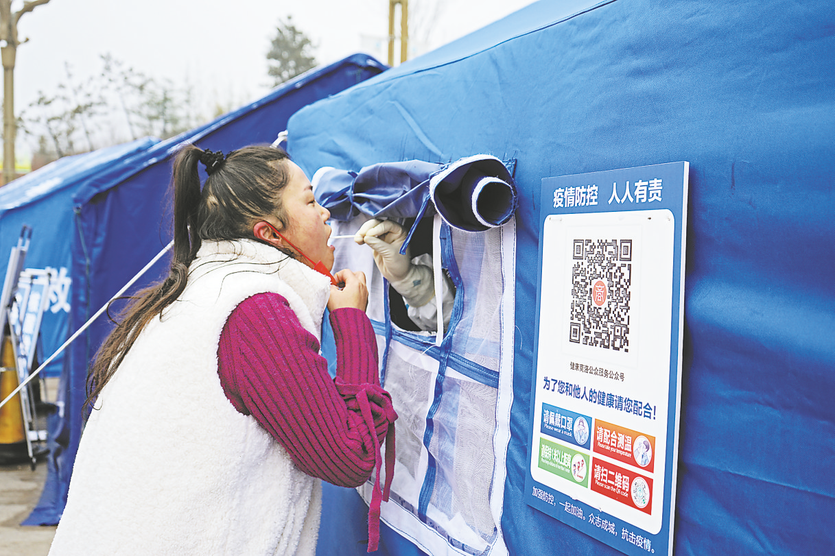 1月6日,寒風(fēng)蕭瑟。在商洛北高速路口,執(zhí)勤隊(duì)伍不懼嚴(yán)寒,測(cè)溫、掃碼,依次排查過往車輛。“請(qǐng)戴好口罩,配合測(cè)溫,出示健康碼、行程碼。”工作人員把好關(guān)口,嚴(yán)防外輸?shù)耐瑫r(shí)保障交通有序運(yùn)行,全力做好疫情防控工作。此時(shí),幾位旅客正在帳篷前間隔一米排隊(duì)掃碼,等待做核酸檢測(cè)。醫(yī)護(hù)人員介紹,此帳篷為商州區(qū)人民醫(yī)院核酸檢測(cè)點(diǎn),從7點(diǎn)至22點(diǎn)都有工作人員值班,核酸樣本由救護(hù)車點(diǎn)對(duì)點(diǎn)運(yùn)送至醫(yī)院檢測(cè),讓群眾便捷、快速取得核酸檢測(cè)結(jié)果。