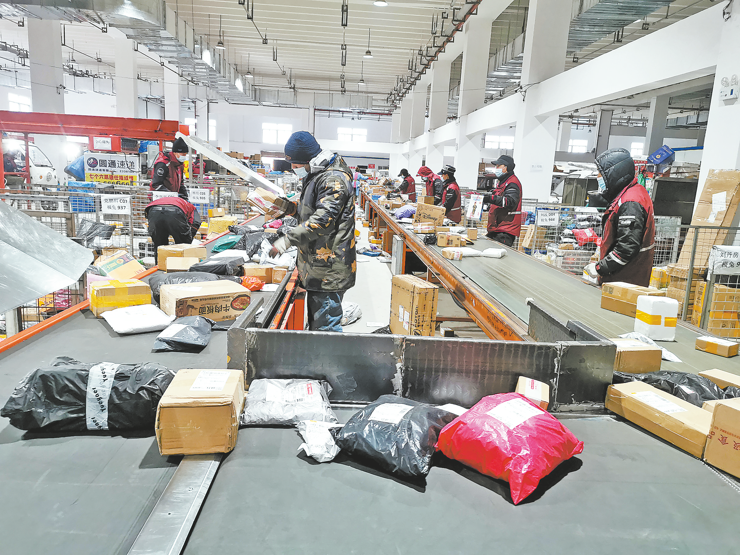 “隨著春節(jié)臨近,市民網(wǎng)購增多,快遞行業(yè)業(yè)務(wù)量增長明顯。在確保各環(huán)節(jié)疫情防控工作做到位的同時(shí),也要保證快遞送達(dá)時(shí)效。”1月13日,在市快遞分揀中心倉庫內(nèi),極兔快遞分揀員彭丹一邊將快遞分揀線上的包裹按區(qū)域分揀,一邊向記者介紹。