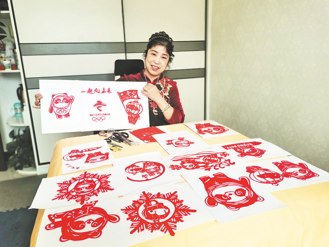 “如今,北京冬奧會(huì)賽事正熱,將剪紙作品與冬奧會(huì)冰雪運(yùn)動(dòng)相結(jié)合,為北京冬奧會(huì) 獻(xiàn) 禮 添福!”看著制作完成的剪紙,王曉娥開心地說。