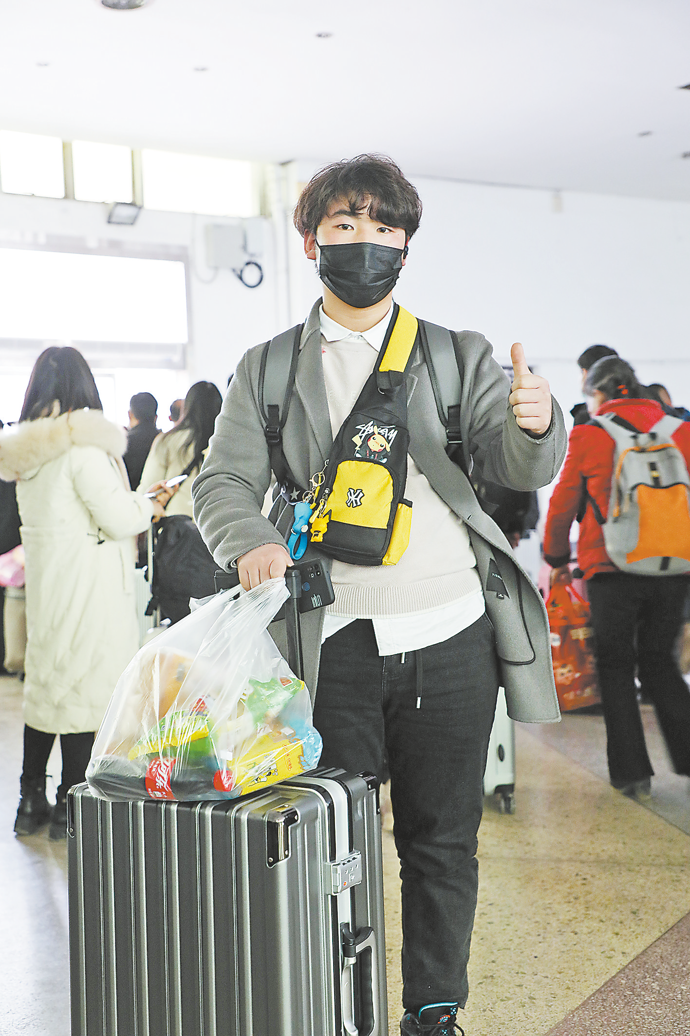 回家前,他用暑假兼職攢下來的錢給家人帶了臘腸、醬鴨等湖州特產(chǎn),這次臨走時(shí),行李箱里又塞滿了家里鹵的豬骨頭、豬頭肉和自釀的黃酒等。“我說夠了夠了,我媽還要給我裝,帶了好多。”謝詩濤露出幸福的笑意,“有人疼的感覺真好。”