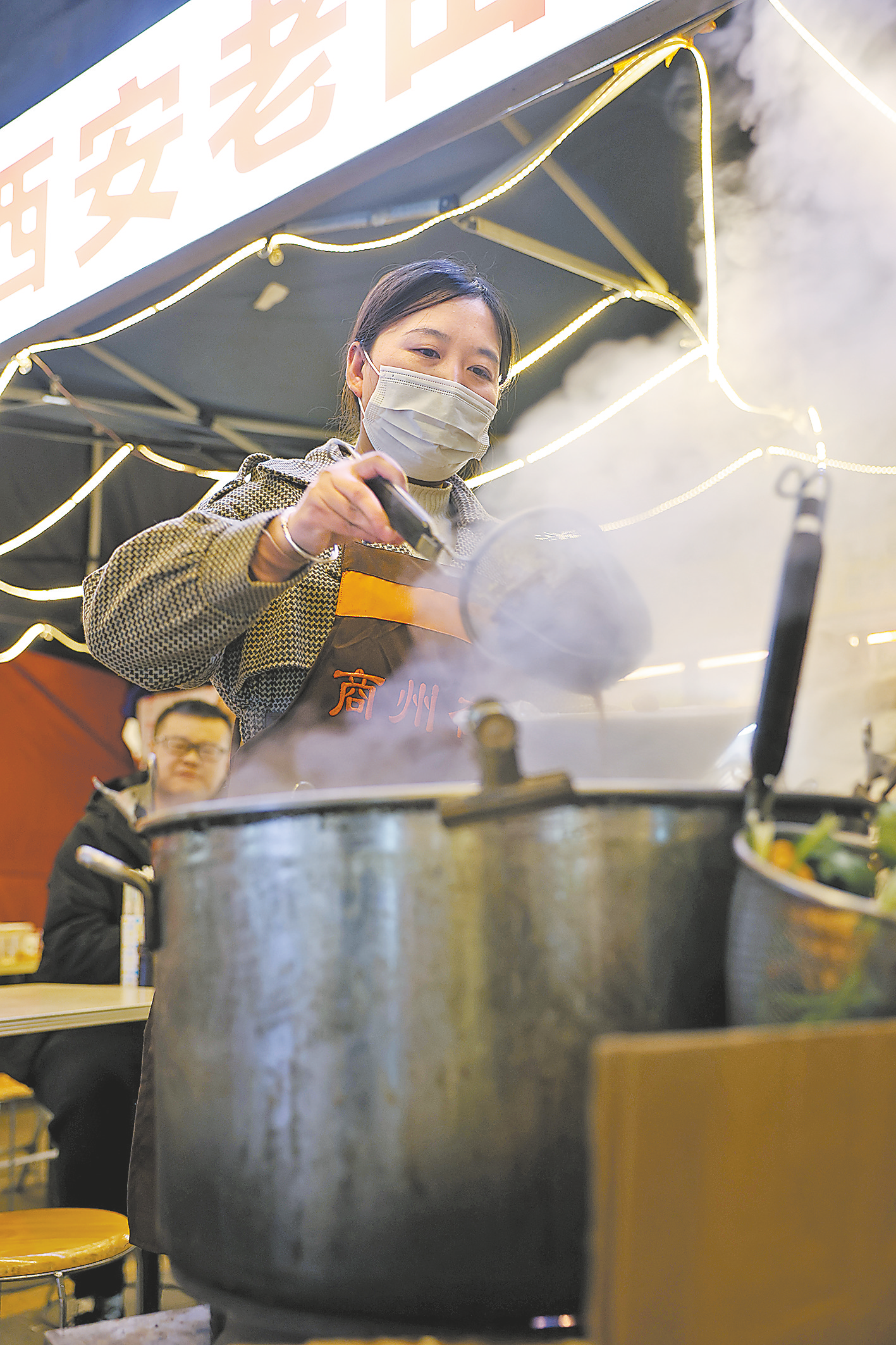 ?、抟雇淼纳讨菀故幸黄瑹艋鹜?,38歲的李佩在冒菜攤點(diǎn)前忙碌著。早上買菜、中午備菜、晚上出攤,是這三年來李佩的日常生活。日子雖然辛苦忙碌,但付出得到的回報也讓她很滿足。