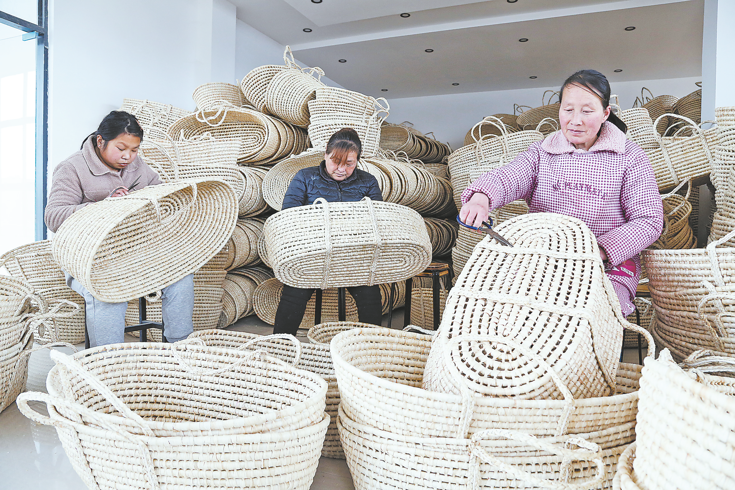 ?、芎芏噢r(nóng)村婦女在料理家務(wù)和照看老人、孩子的同時,她們會利用閑余時間找點(diǎn)活干,撐起家庭的經(jīng)濟(jì)重?fù)?dān)。洛南縣景村鎮(zhèn)豐中村村民李彩霞在當(dāng)?shù)氐牟菥幒献魃缟习啵?0多名婦女一起,每天利用玉米和小麥秸稈等編織搖籃、帽子、拖鞋等產(chǎn)品,由于產(chǎn)品純手工且環(huán)保無污染,市場前景廣闊。她們在增加家庭收入的同時,也將傳統(tǒng)手工藝產(chǎn)品推向了國內(nèi)外市場。