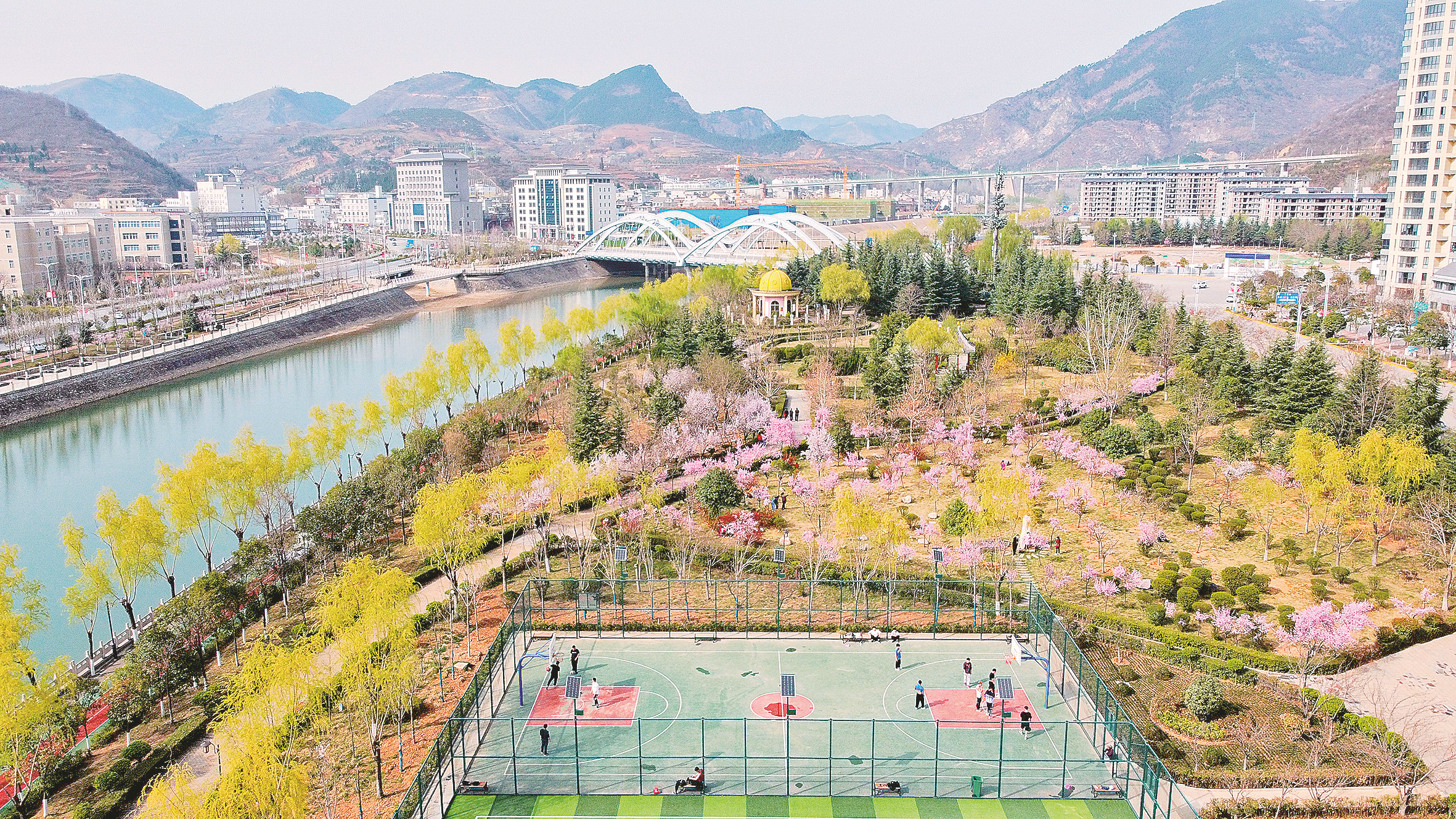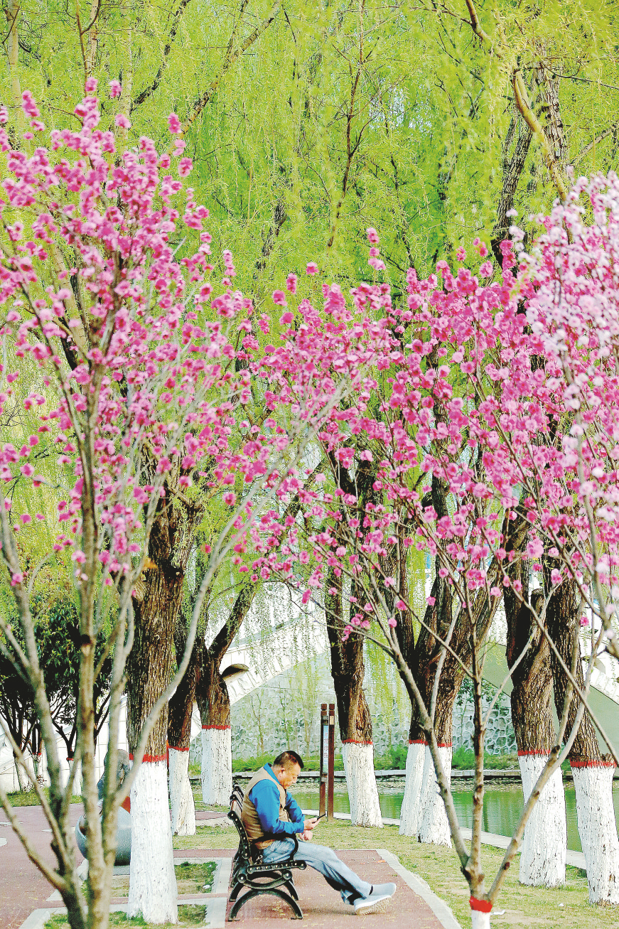 明媚的陽(yáng)光,和煦的春風(fēng),又是一年春色滿城時(shí)。春天里的州城,紅梅、桃花等如期盛開,生機(jī)盎然,美不勝收,成為一道美麗的風(fēng)景。市民紛紛前去賞花拍照,還有市民在拍攝各種創(chuàng)意短視頻,三三兩兩,笑聲、歌聲在花海中飄蕩。丹江河畔,柳樹冒出新綠,許多市民趁著天氣晴好來到河邊,或領(lǐng)著孩子玩耍,或坐在椅子上享受悠閑,感受春天的氣息。