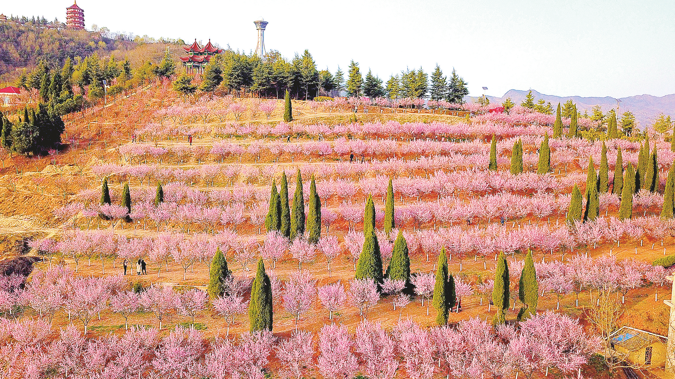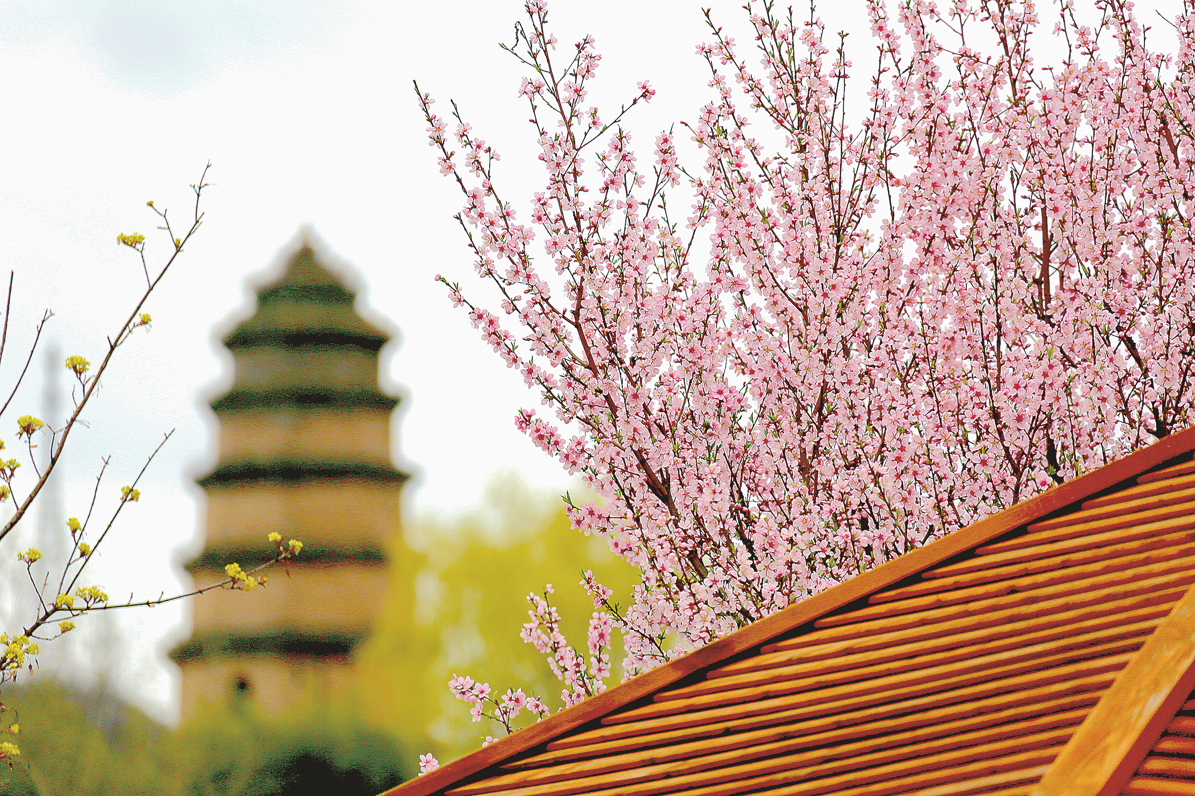 東龍山古塔與桃花相映襯