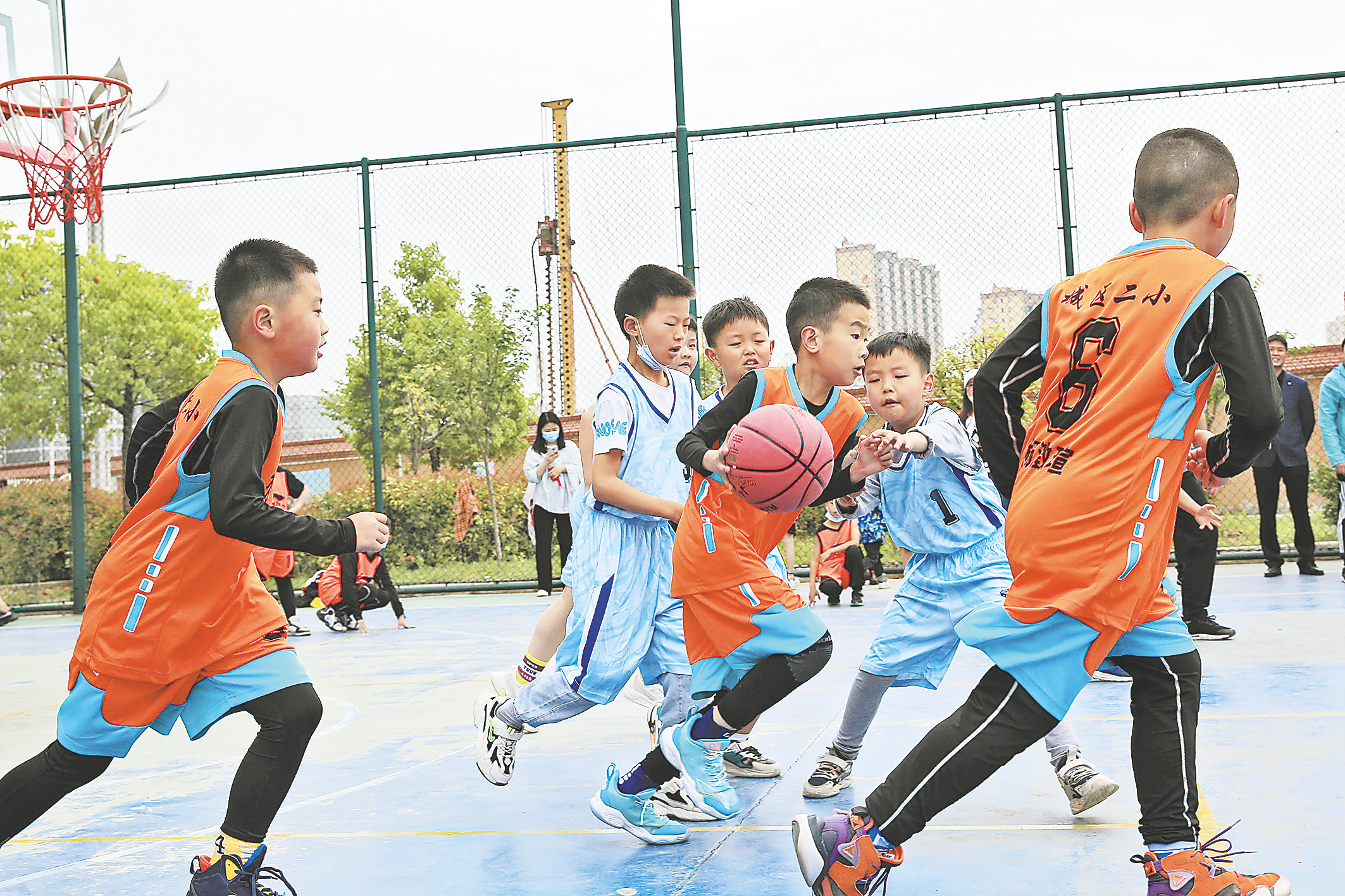 △近日,由山陽縣科教體局主辦的2022年山陽縣小籃球及初高中五人制籃球比賽在縣體育運動中心開賽?;@球小將們在賽場上奮勇拼搏,彰顯了健康向上的精神風貌。