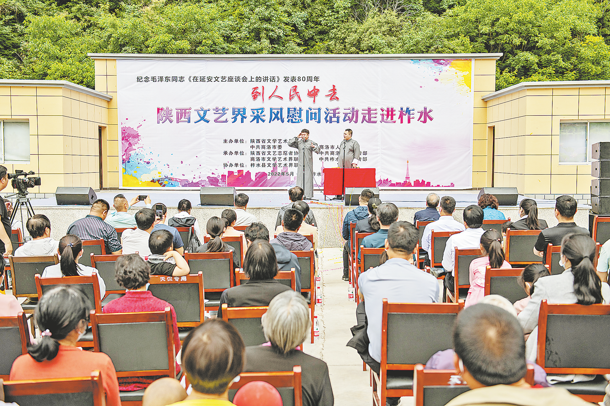 5月22日,紀(jì)念毛澤東同志《在延安文藝座談會上的講話》發(fā)表80周年“到人民中去”陜西文藝界走進(jìn)商洛采風(fēng)慰問活動在柞水縣終南山寨文創(chuàng)基地畫上圓滿的句號。