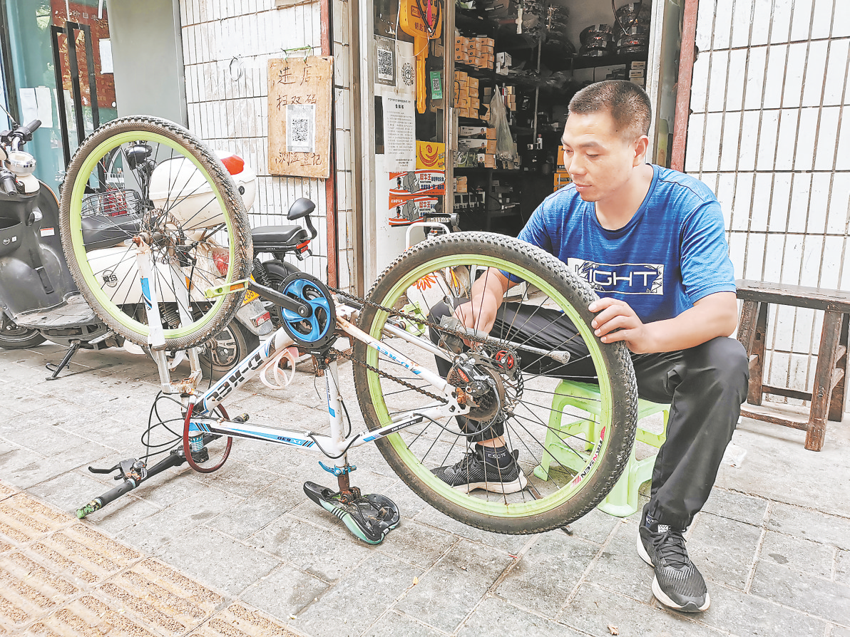 今年40歲的孫衛(wèi)華經(jīng)營(yíng)這家修車行已將近15年,從一開始的自行車修理鋪發(fā)展為如今涵蓋電動(dòng)車、自行車、三輪架子車修理和各類配件銷售的綜合型修理鋪,他靠著勤勞踏實(shí)和誠實(shí)守信把小店經(jīng)營(yíng)得紅紅火火,贏得了不少回頭客。2009年起,孫衛(wèi)華就開起了自行車修理鋪,兼顧銷售自行車配件等,靠著手藝賺錢,孫衛(wèi)華夫婦很滿足當(dāng)時(shí)的情況。“那會(huì)兒自行車是出行最主要的交通工具,修車的攤子自然也多,而且還很受重視,像人們現(xiàn)在的汽車一樣定期保養(yǎng),挑個(gè)大晴天洗洗車,給齒輪鏈條上上油,也是必不可少的程序。一旦車閘不靈了、車鏈子掉了、車胎扎破了,即刻推向修車攤,三下五除二,一會(huì)兒工夫就能給修好。”