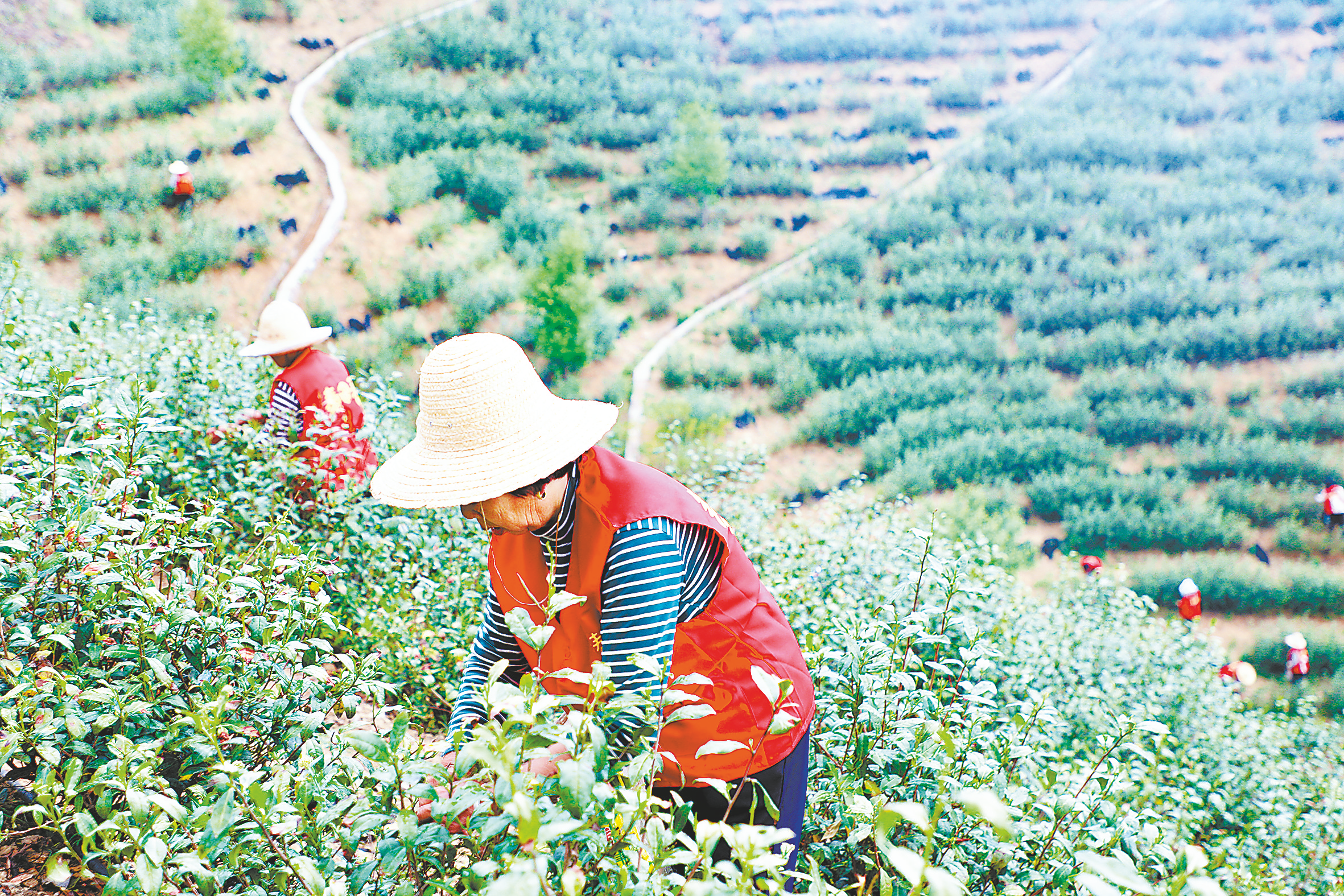 “今年茶旅康養(yǎng)融合示范園將建成年產(chǎn)30萬斤茶葉的清潔加工廠、茶馬互市景點、自助式小茶樓等,通過旅游帶動茶產(chǎn)業(yè)的發(fā)展。”商南縣七碗茶茶業(yè)有限公司董事長王海龍說,“我們公司通過租地、務工、分紅等方式,給當?shù)厝罕妿砹藢嵈驅(qū)嵉氖找妗?rdquo;
