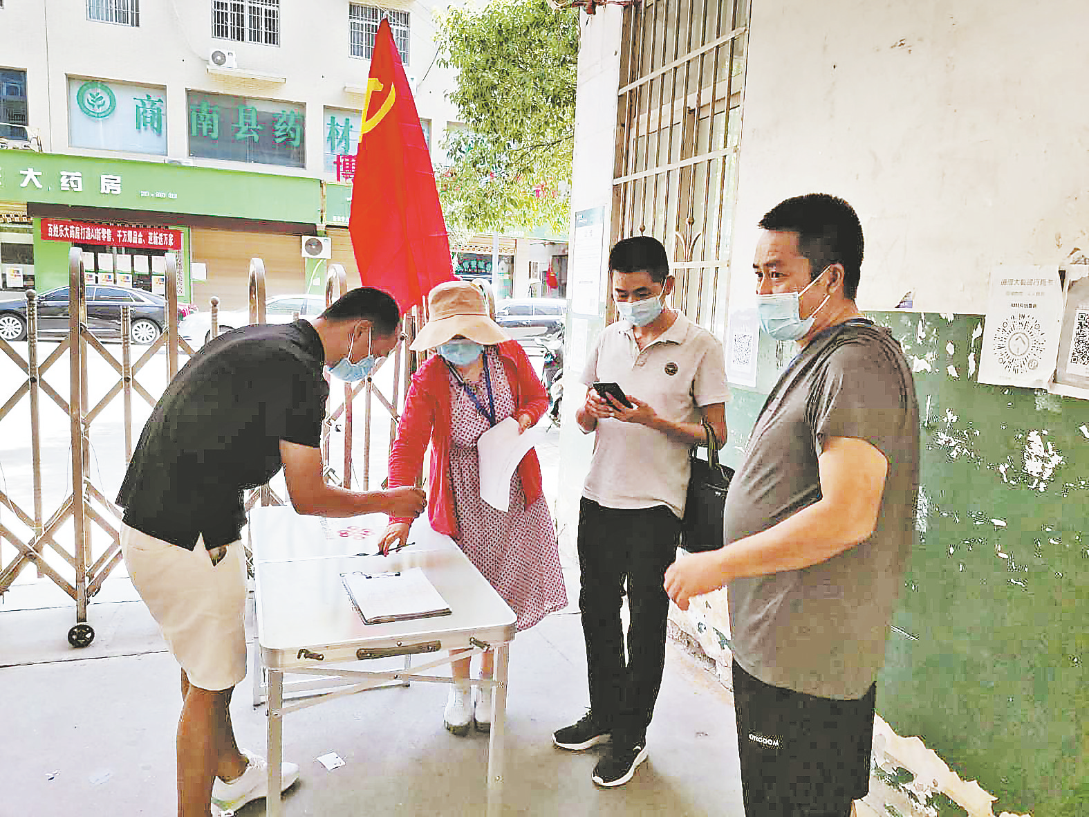 商南縣分公司黨員在小區(qū)門口流調(diào)