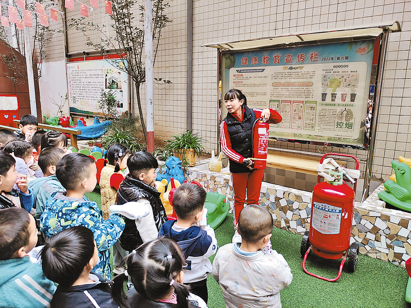 11月9日,市區(qū)部分幼兒園組織師生在園內(nèi)開(kāi)展消防安全教育活動(dòng),向幼兒普及消防安全知識(shí),增強(qiáng)自我保護(hù)意識(shí)。 (本報(bào)記者 方 方 攝)