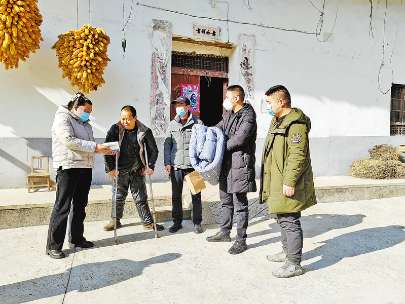 1月4日,市慈善協(xié)會、市信訪局、市供銷社聯(lián)合開展的“寒冬送溫暖”活動走進丹鳳縣竹林關(guān)鎮(zhèn)孤山坪村。工作人員為脫貧戶和監(jiān)測戶送去了大米165袋、食用油165桶以及御寒的棉衣207件。 (本報通訊員 蘇甜甜 攝)