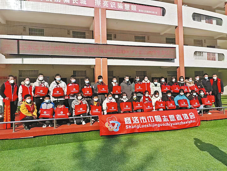 商洛市巾幗志愿者協(xié)會(huì)聯(lián)合公益組織開(kāi)展“守護(hù)兒童 托起希望”關(guān)愛(ài)鄉(xiāng)村兒童暖冬行動(dòng)。圖為為黑龍口初中學(xué)生捐贈(zèng)校服和鞋襪。