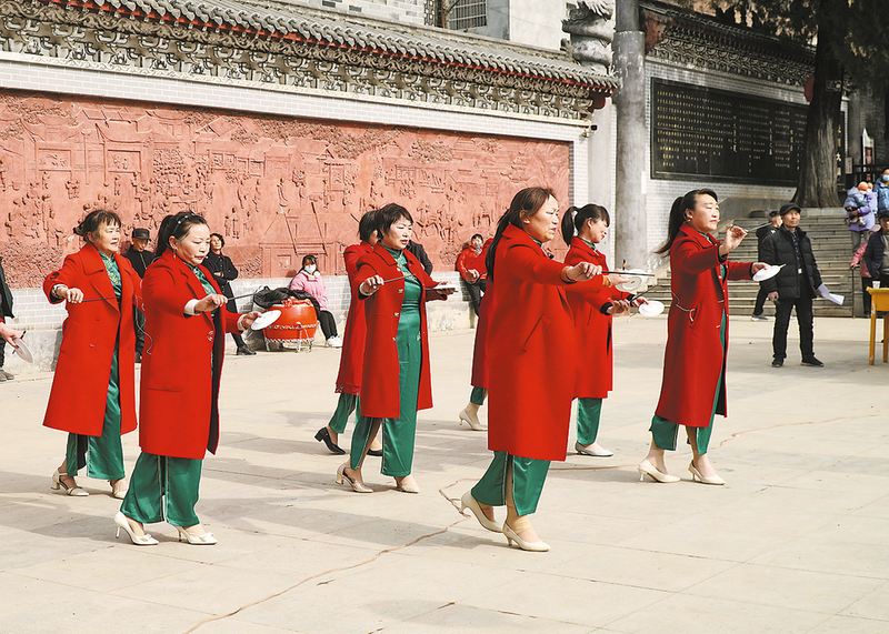1月25日,在山陽(yáng)縣漫川關(guān)鎮(zhèn)雙戲樓廣場(chǎng),龍灣小區(qū)民樂(lè)匯藝術(shù)團(tuán)為慶祝新年到來(lái),表演了獨(dú)唱、群口快板、小品等精彩節(jié)目,吸引群眾駐足觀看。 (本報(bào)記者 方 方 攝)