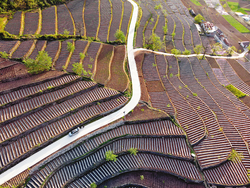 田園綜合體是盤活鄉(xiāng)村資源、打造特色農(nóng)業(yè)的重要載體。近年來,鎮(zhèn)安縣依托當?shù)貎?yōu)越的自然生態(tài)環(huán)境,以土地流轉(zhuǎn)為抓手,加強基本煙田規(guī)劃與保護,實行以烤煙為主、烤煙與特色農(nóng)作物的輪作模式,推動“煙葉強、煙農(nóng)富、煙區(qū)美”烤煙產(chǎn)業(yè)田園綜合體建設。圖為鎮(zhèn)安縣鐵廠鎮(zhèn)烤煙田園綜合體覆膜農(nóng)田似“大地指紋”,非常壯觀。 (本報通訊員 陳緒榮 攝)