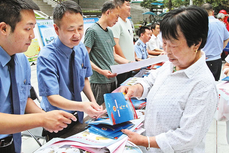 △7月15日至17日,山陽縣檢察院工作人員在縣人民政府廣場開展“秦嶺生態(tài)環(huán)境保護(hù)”集中宣傳活動(dòng),集中向群眾普及檢察機(jī)關(guān)公益訴訟職能及生態(tài)環(huán)境保護(hù)法律知識(shí)。