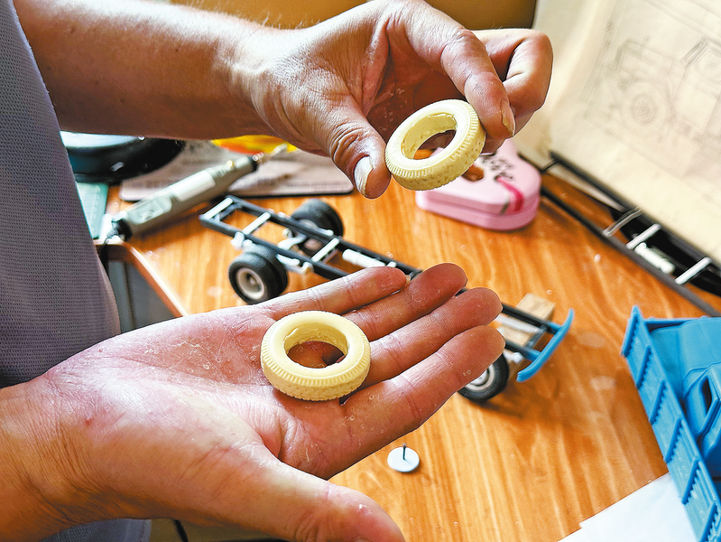 余鑫正在制作東風(fēng)卡車模型