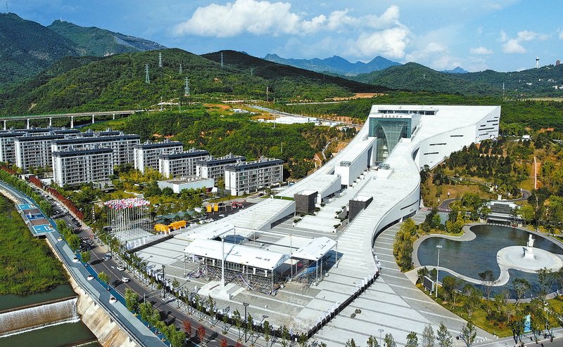 8月20日,秦嶺博物館西廣場上,參加2024國際排聯(lián)沙灘排球U19世界錦標(biāo)賽的國家和地區(qū)的旗幟迎風(fēng)飄揚(yáng),工作人員正加快推進(jìn)比賽場地搭建收尾和配套設(shè)施完善工作。比賽主場地與秦嶺博物館“山水玉璋”相互呼應(yīng),能夠同時(shí)容納1500名觀眾觀看比賽。