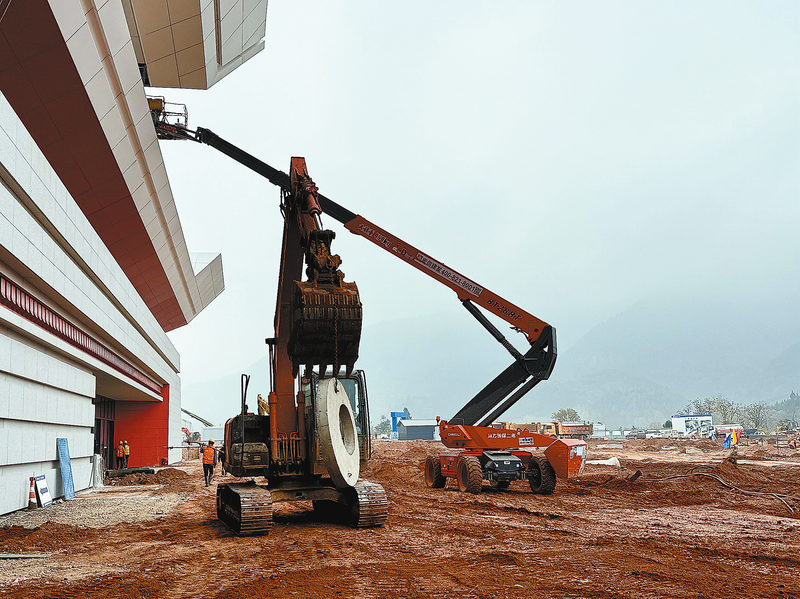 作為西十高鐵商洛西站核心配套工程的重要組成部分,站前廣場正加快建設(shè),助力商洛加速邁入高質(zhì)量發(fā)展的“高鐵時代”。圖為11月4日商洛西站站前廣場施工現(xiàn)場,各個環(huán)節(jié)正有條不紊地推進(jìn)中。 (本報記者 謝 非 攝)