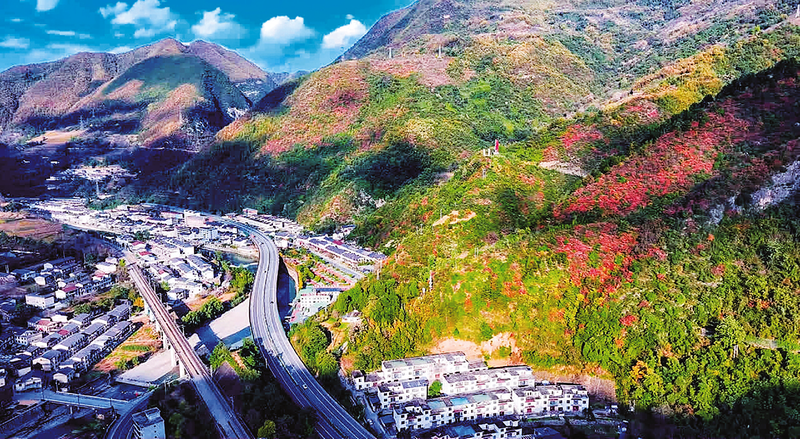 △在柞水縣下梁鎮(zhèn),紅綠相間的葉子層層疊疊點綴在山間,把小鎮(zhèn)周圍變成了彩色,遠(yuǎn)遠(yuǎn)望去煞是美麗。