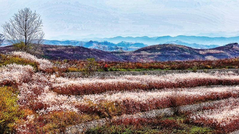 △在商州區(qū)大荊鎮(zhèn),山坡上的蘆葦隨風(fēng)搖曳,靜謐的山坡因此多了幾分浪漫和生機。