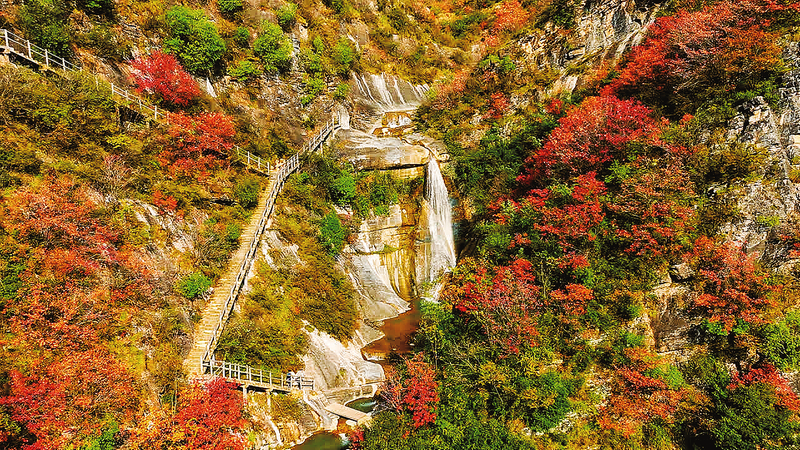 走進山陽縣天蓬山寨,紅葉似燃燒的火焰,爛漫如云霞,將景區(qū)裝點得如夢如幻。