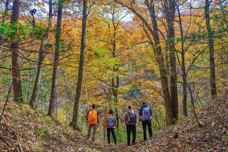 丹鳳縣巒莊鎮(zhèn)的老林溝,是徒步愛好者的天堂。沿著蜿蜒的山路前行,溝里高聳入云的樹木呈現(xiàn)出紅、黃、綠等多種顏色,與遠(yuǎn)山構(gòu)成了一幅立體的秋日圖景,讓人不由得感嘆大自然的神奇。