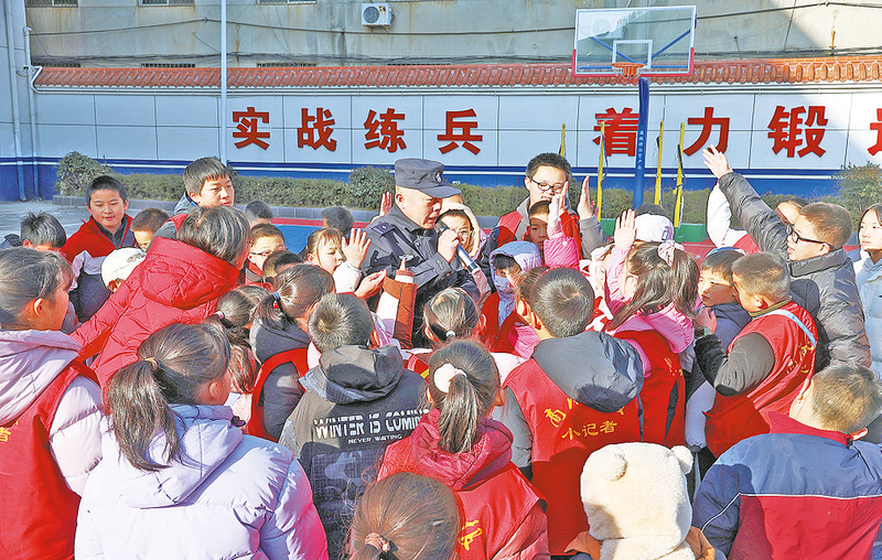 ?民警開(kāi)展反電詐宣傳,小記者積極互動(dòng)。