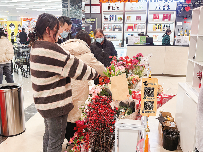 2025年12月31日,市民在開鄰超市選購鮮花。