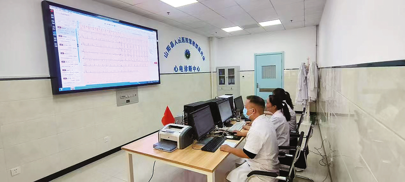 山陽縣醫(yī)共體總院心電診斷中心正在對基層上傳的心電檢查信息進(jìn)行分析診斷。