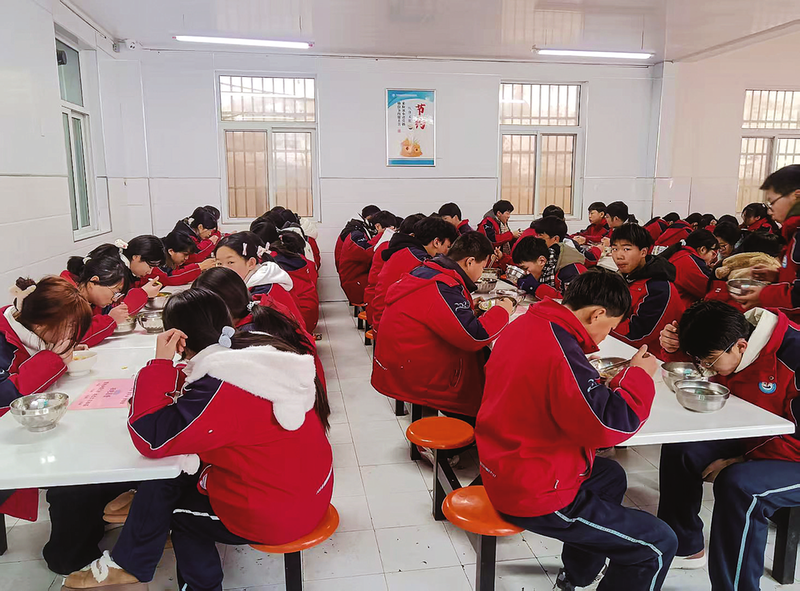 1月23日,丹鳳縣第三小學食堂秩序井然,學生們正在享用營養(yǎng)午餐。