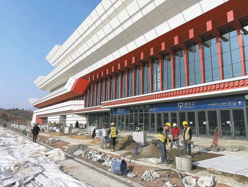 29歲的鄒光敬,是中鐵建工集團(tuán)西十高鐵陜西段XSZF-1標(biāo)段項(xiàng)目經(jīng)理部安全環(huán)保部部長,老家在陜西漢中。2023年8月,他來到商洛西站的施工現(xiàn)場,如今已是第三個(gè)年頭,其間過年只回過一次家。小年這天,他沒有像常人一樣籌備年貨、規(guī)劃歸途,而是身著工裝,穿梭在工地的各個(gè)角落,緊盯車站建筑主體外圍的地面石材鋪設(shè)進(jìn)度。“這幾天我們爭分奪秒趕工,爭取放假前完成鋪設(shè),不耽誤后續(xù)工期。”他的聲音被機(jī)器轟鳴聲裹挾,卻依舊堅(jiān)定有力。