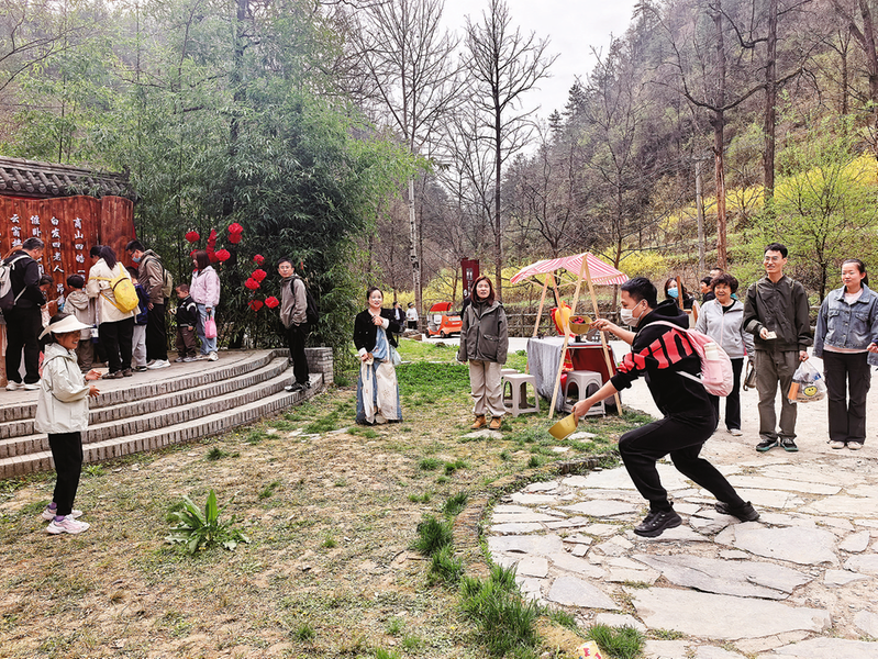 除了舌尖上的滿足,景區(qū)內(nèi)還設(shè)置了四皓辨藥、投壺射箭、成語接龍等NPC互動游戲。游客參與游戲即可贏取“銀票”,兌換特色禮品或直接抵現(xiàn)金消費,趣味性與文化性兼具。峽谷踏青、春茶品飲、非遺DIY……秦嶺江山景區(qū)用一場“最野煙火氣”的春日盛宴,留住了無數(shù)歡聲笑語。