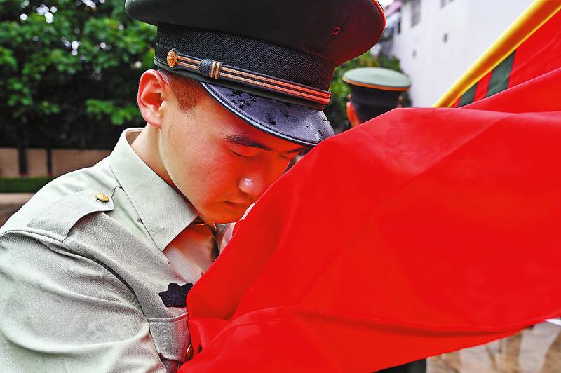 連日來,秋雨綿綿,為這個(gè)揪心的季節(jié)又增添了幾分傷感。在這個(gè)莊重而又難忘的時(shí)刻,官兵們?nèi)徊活櫆喩肀挥晁驖?,雨中卸銜,分不清劃過臉頰的是雨水還是淚水。
