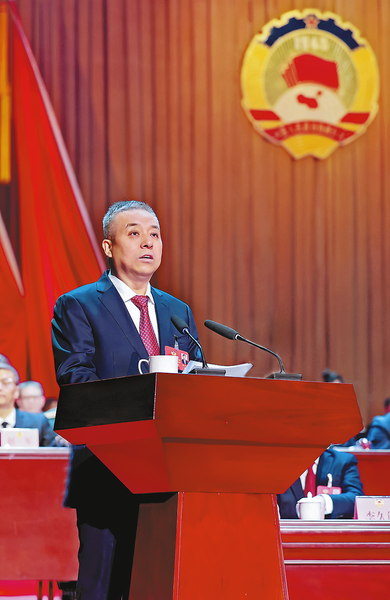 2月1日,市政協(xié)主席王寧崗代表政協(xié)商洛市第五屆委員會(huì)常務(wù)委員會(huì)向大會(huì)作工作報(bào)告。 (本報(bào)記者 李 敏 攝)