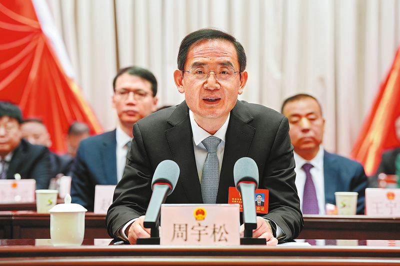 2月6日上午,商洛市第五屆人民代表大會(huì)第六次會(huì)議在商州勝利閉幕。市委書記周宇松在會(huì)上講話。 (本報(bào)記者 李小龍 攝)
