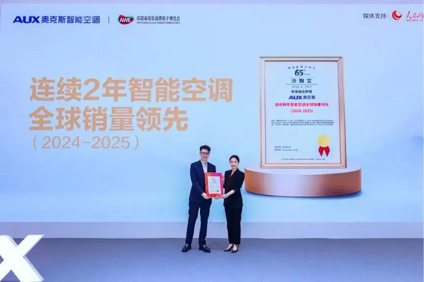 市場(chǎng)是最真實(shí)的試金石。發(fā)布會(huì)現(xiàn)場(chǎng),奧克斯空調(diào)斬獲兩項(xiàng)重磅認(rèn)證,奧維云網(wǎng)數(shù)據(jù)顯示,奧克斯AI智能空調(diào)中國(guó)銷量第一;沙利文則授予其“連續(xù)2年智能空調(diào)全球銷量領(lǐng)先(2024-2025)”的權(quán)威地位。