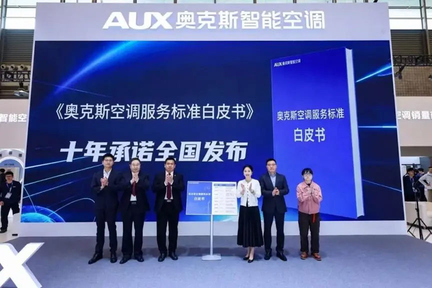 AWE現(xiàn)場(chǎng),奧克斯在中國(guó)家電服務(wù)維修協(xié)會(huì)、國(guó)家市場(chǎng)監(jiān)督管理總局等機(jī)構(gòu)的見證下,鄭重承諾自2026年1月1日起,全系分體空調(diào)實(shí)行“整機(jī)十年包修”服務(wù),并發(fā)布《奧克斯空調(diào)服務(wù)標(biāo)準(zhǔn)白皮書》。