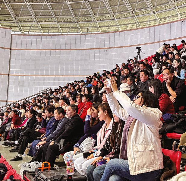 12月5日晚6時,開幕式尚未開始,市體育館已座無虛席。近千名觀眾早早入場等候,動感十足的開場音樂響起,當(dāng)身著各色隊服的運動員精神抖擻步入賽場時,全場頓時爆發(fā)出雷鳴般的掌聲。伴隨著莊嚴(yán)的國歌聲,6歲的祝依冉小朋友,用稚嫩卻無比堅定的聲音高聲跟唱,清澈的童聲與全場的歌聲交織,成為開幕式上最動人的瞬間,也讓這份對祖國的熱愛、對賽事的期盼,深深扎根在每個人心中。